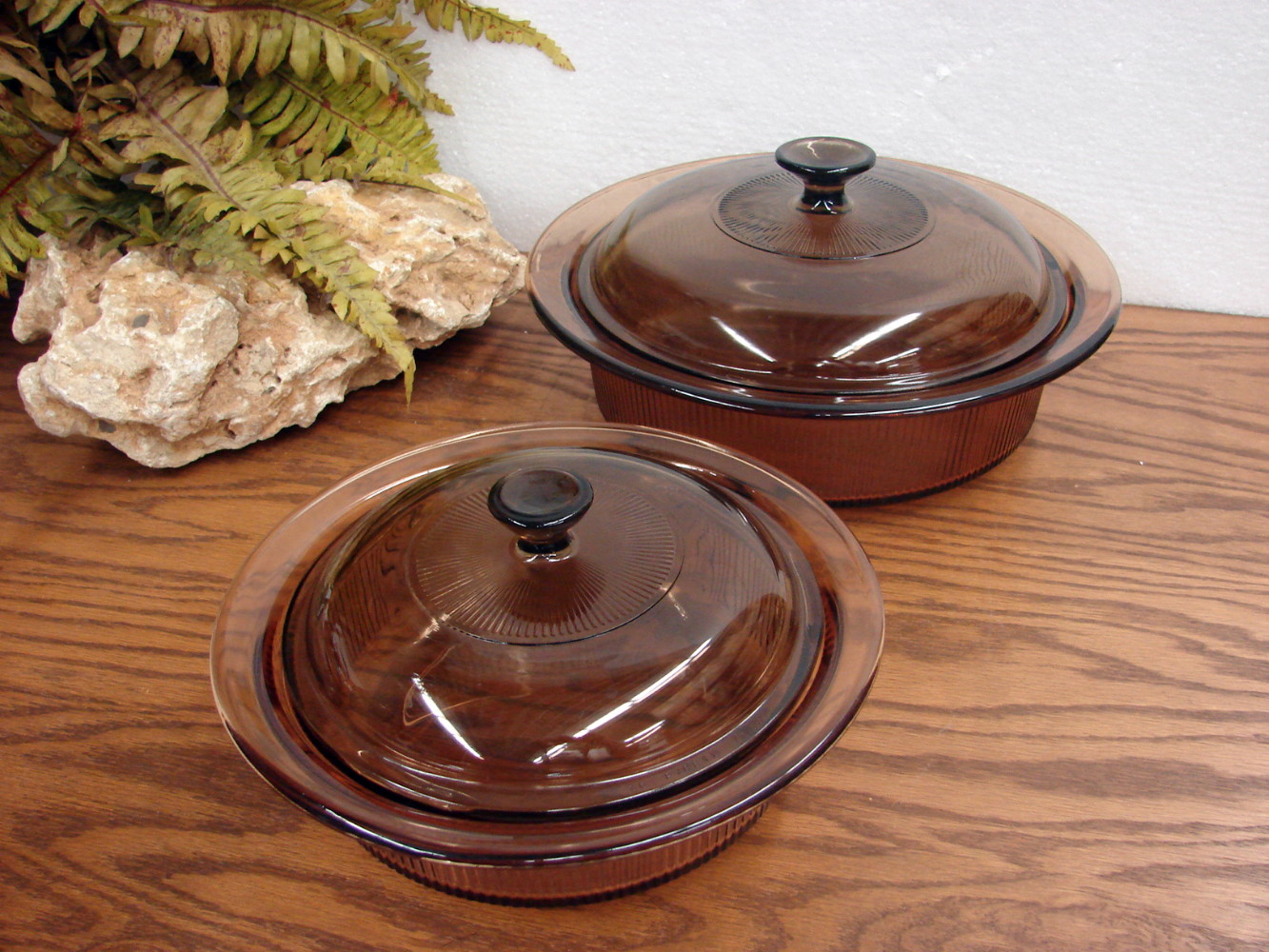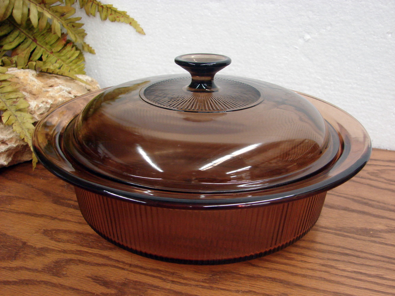 Vintage PYREX Amber Brown Visions 1.5 Qt Ribbed Round Casserole w/ Matching Lid