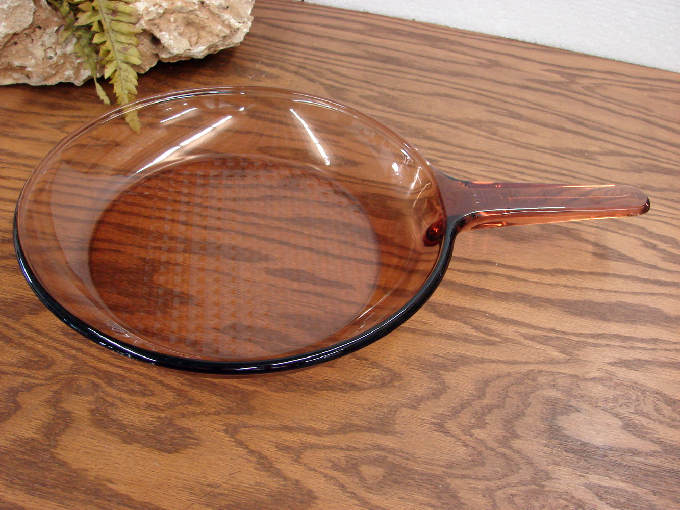 Vintage PYREX Amber Brown 10″ waffle bottom Skillet Fry Pan. Measures about 10″ wide by 2″ deep. Previously enjoyed and free from damage. Little to no wear. Many more options of Visions PYREX pieces also available.