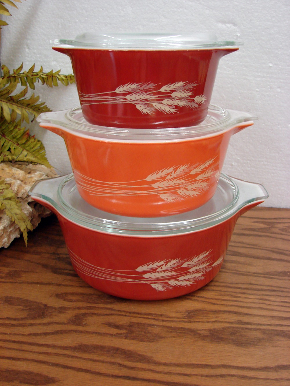 Vintage PYREX Autumn Harvest Wheat Cinderella Round Casserole #474. Holds about 1 1/2 Quarts. Picture in middle of stack. Previously enjoyed with little to no wear . More options in this pattern also available.