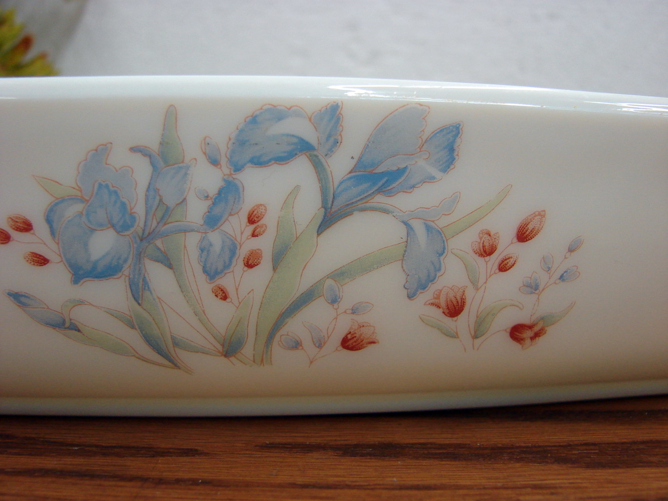 Vintage PYREX Blue Iris Casserole Open Roaster Made in England. Measures about 11 x 8 1/2 x 2 1/4″. Previously enjoyed with no wear. More England made Pyrex also available.