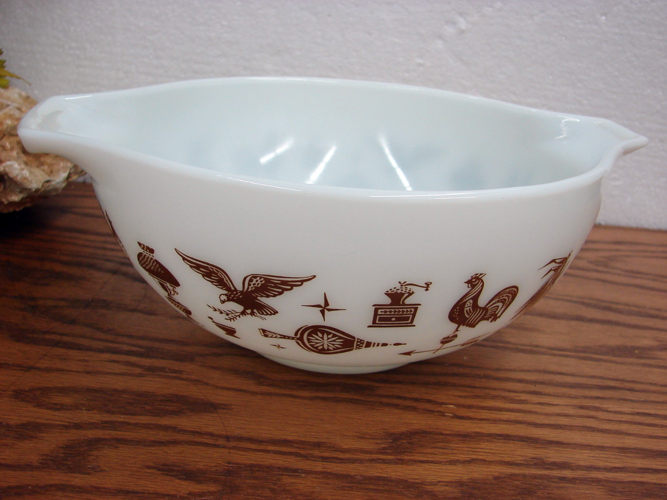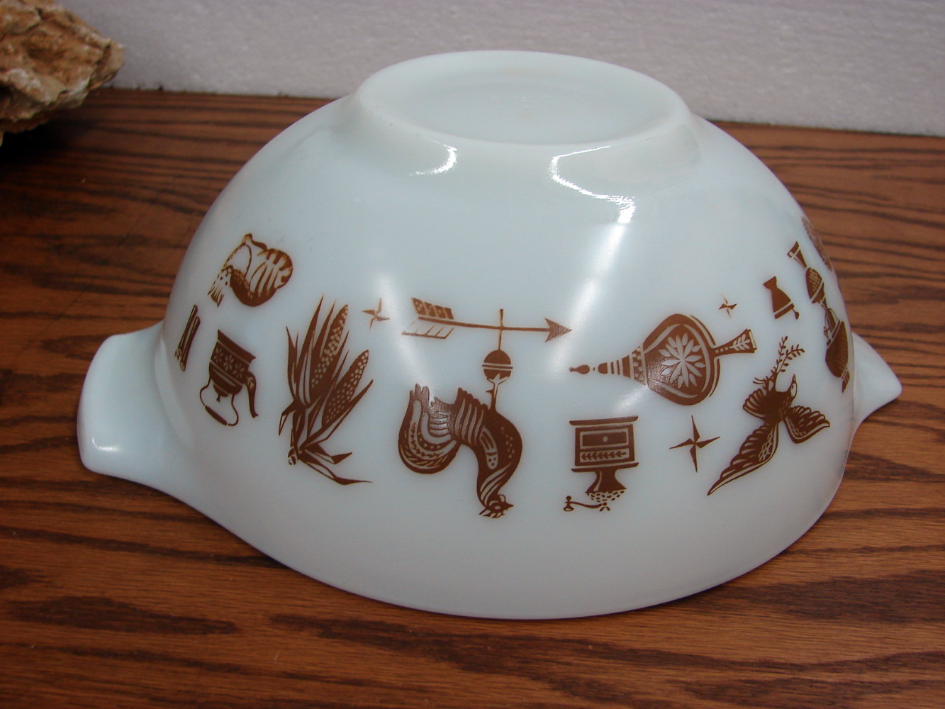 Vintage White Brown and Gold patterned PYREX Early American.  #443 Cinderella Nesting Mixing Bowl.