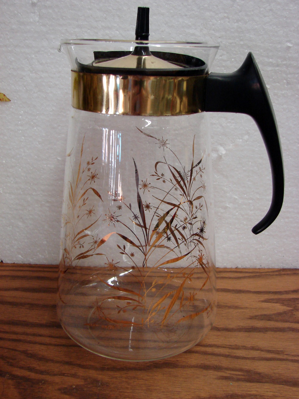 Vintage PYREX Pitcher Carafe complete with fancy lid. Wheat stems with Atomic flowers measures about 9″ tall. Little to no wear. More options like this also available.