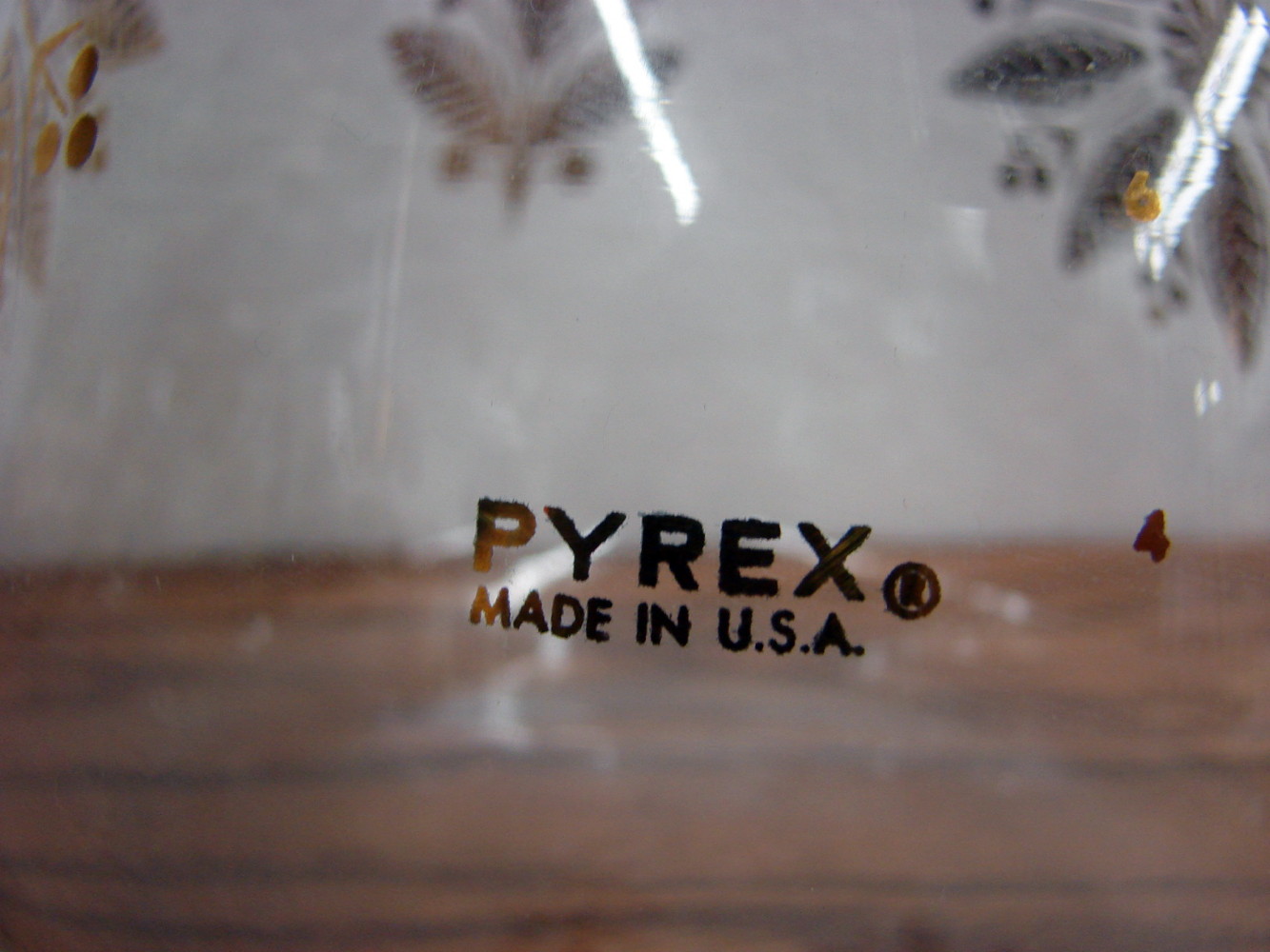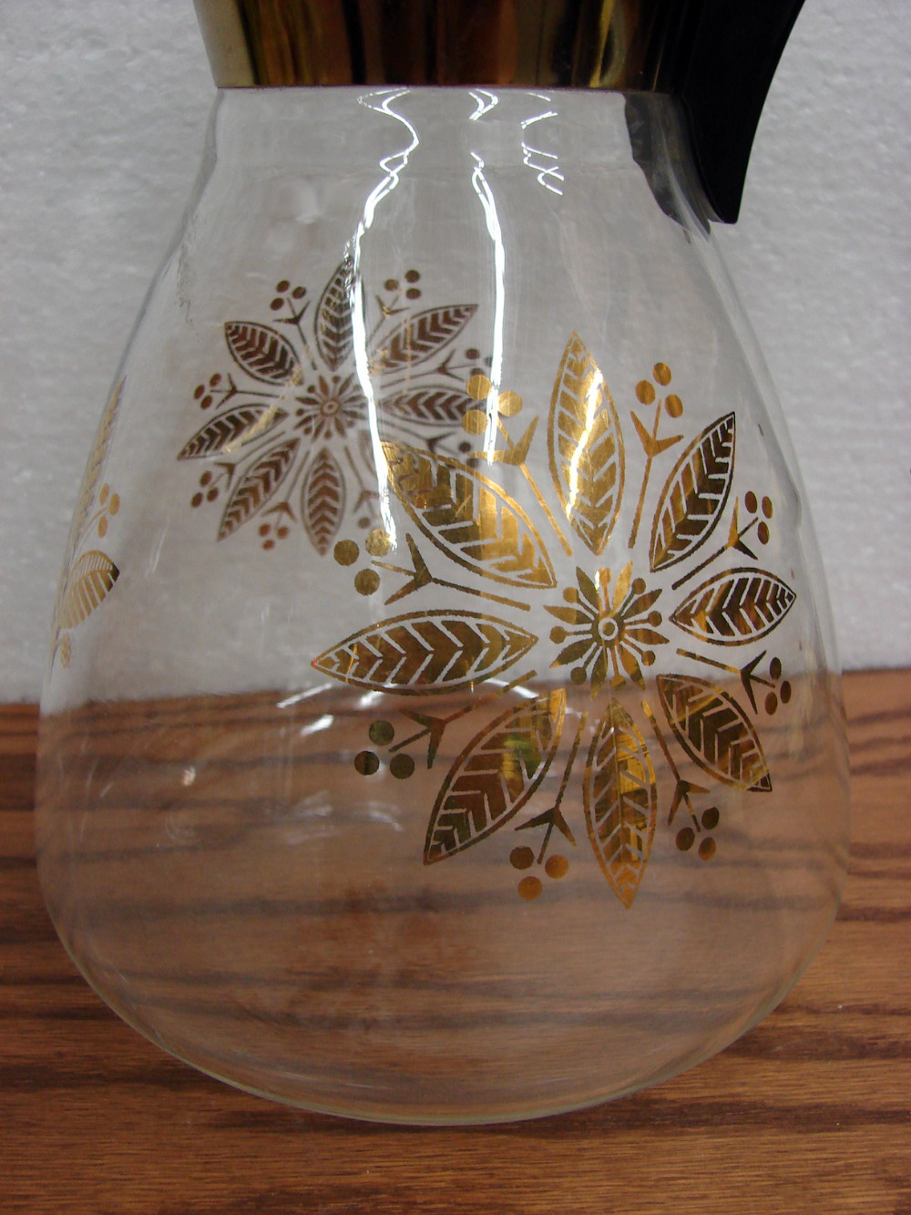 Vintage PYREX Gold Trim MCM Carafe Decanter Pitcher w/ Fancy Lid Bell Flowers