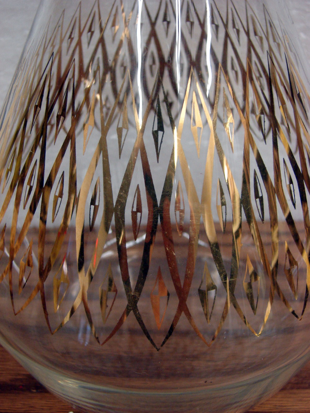 Vintage PYREX Gold Trim MCM Carafe Decanter Pitcher w/ Fancy Lid Atomic Flowers