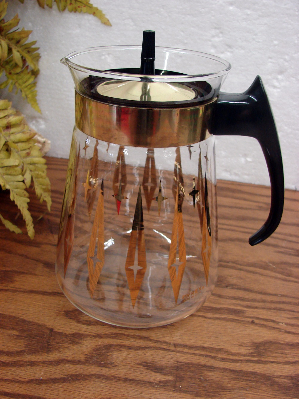 Vintage PYREX 9 Cup Coffee Server Flameware Chrome Glass MCM Glass Knob #8859