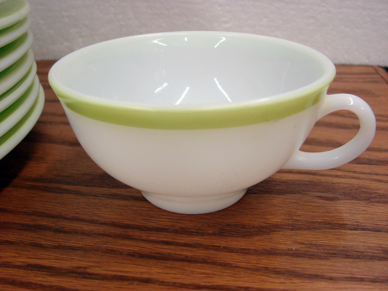 16 pc Vintage PYREX Lime Green Band Cup/Saucer Bread Butter Plate Dinner Plate