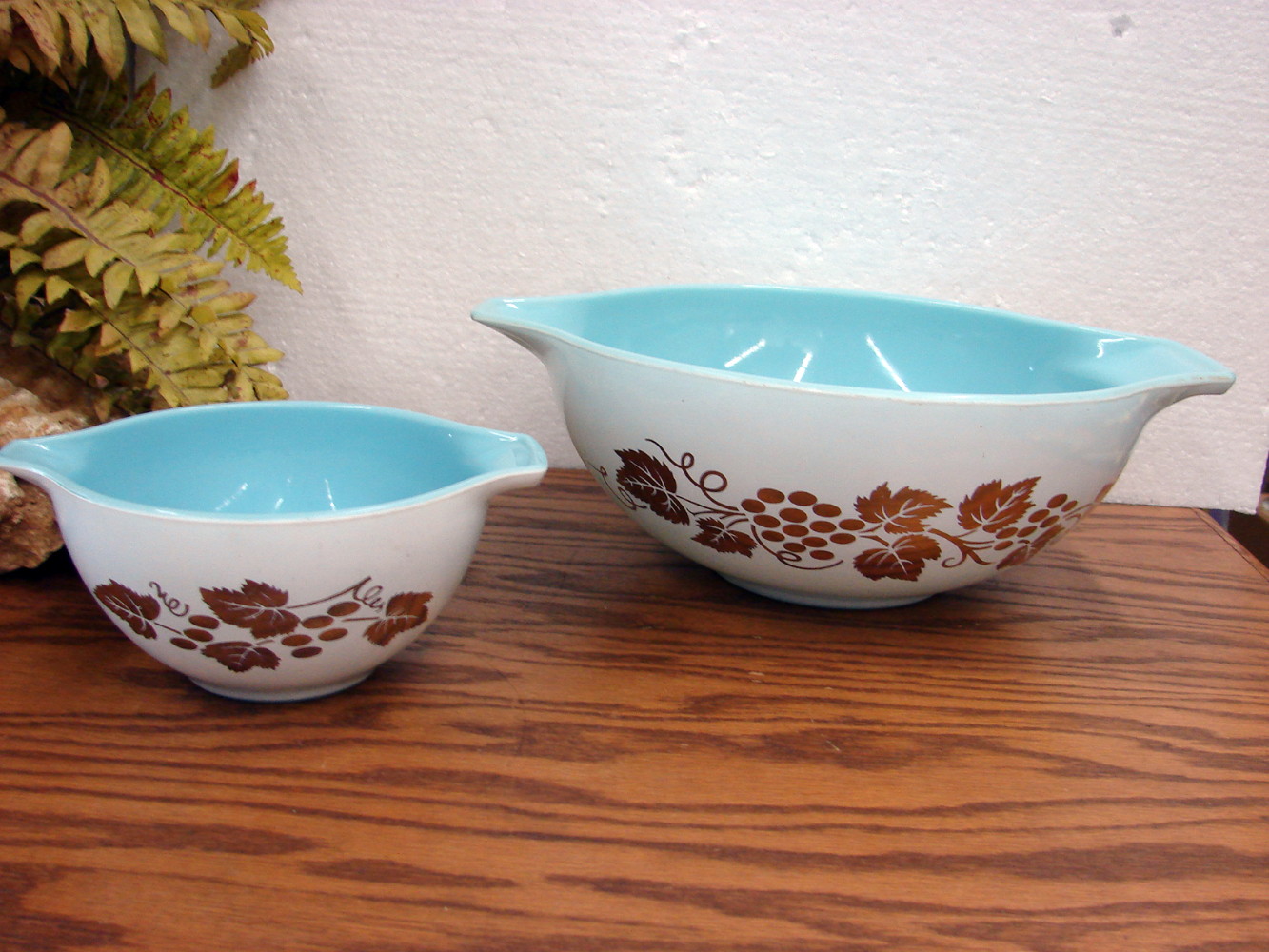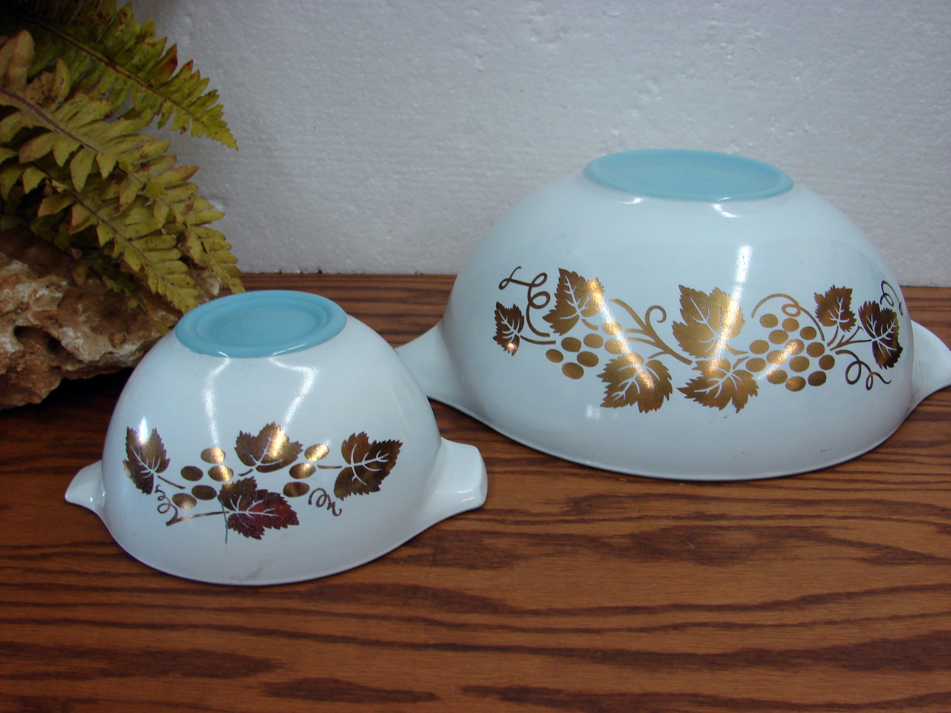 Vintage PYREX Golden Grapes Chip and Dip Bowls #441 and #444. Previously enjoyed but has little to no wear. Beautiful coloring!