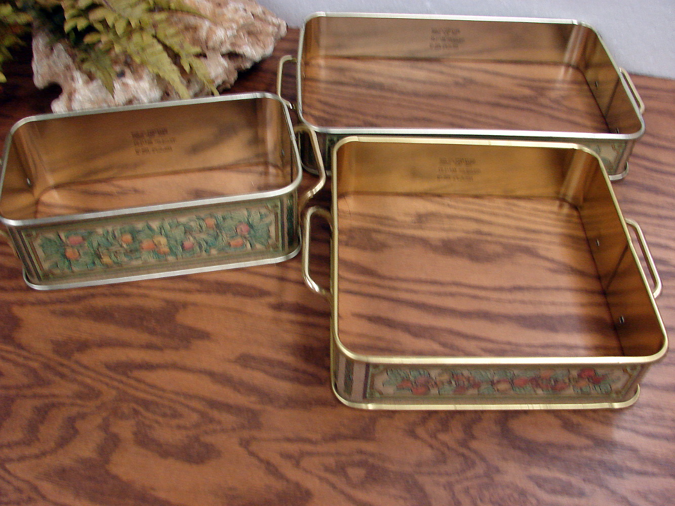 Give your boring clear Pyrex a touch of color for the Holidays. Set/3 Vintage Pyrex tin sleeves covers for glass loaf and glass pans. Will fit #213 loaf, #222 square and #232 Rectangular. Tin covers only, pans not included. Free from damage.