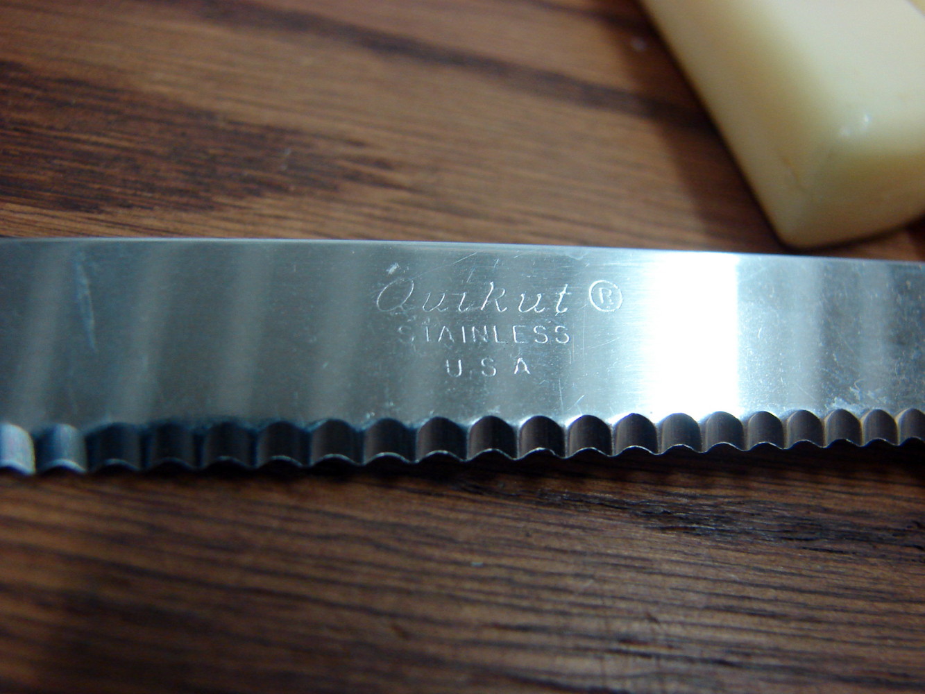 Vintage Quikut 6 pc Steak Knife set. Each measures about 7 1/2″ long and are marked Quikut Stainless USA. All in Vanilla colored Bakelite handles. Do not believe they were ever used.