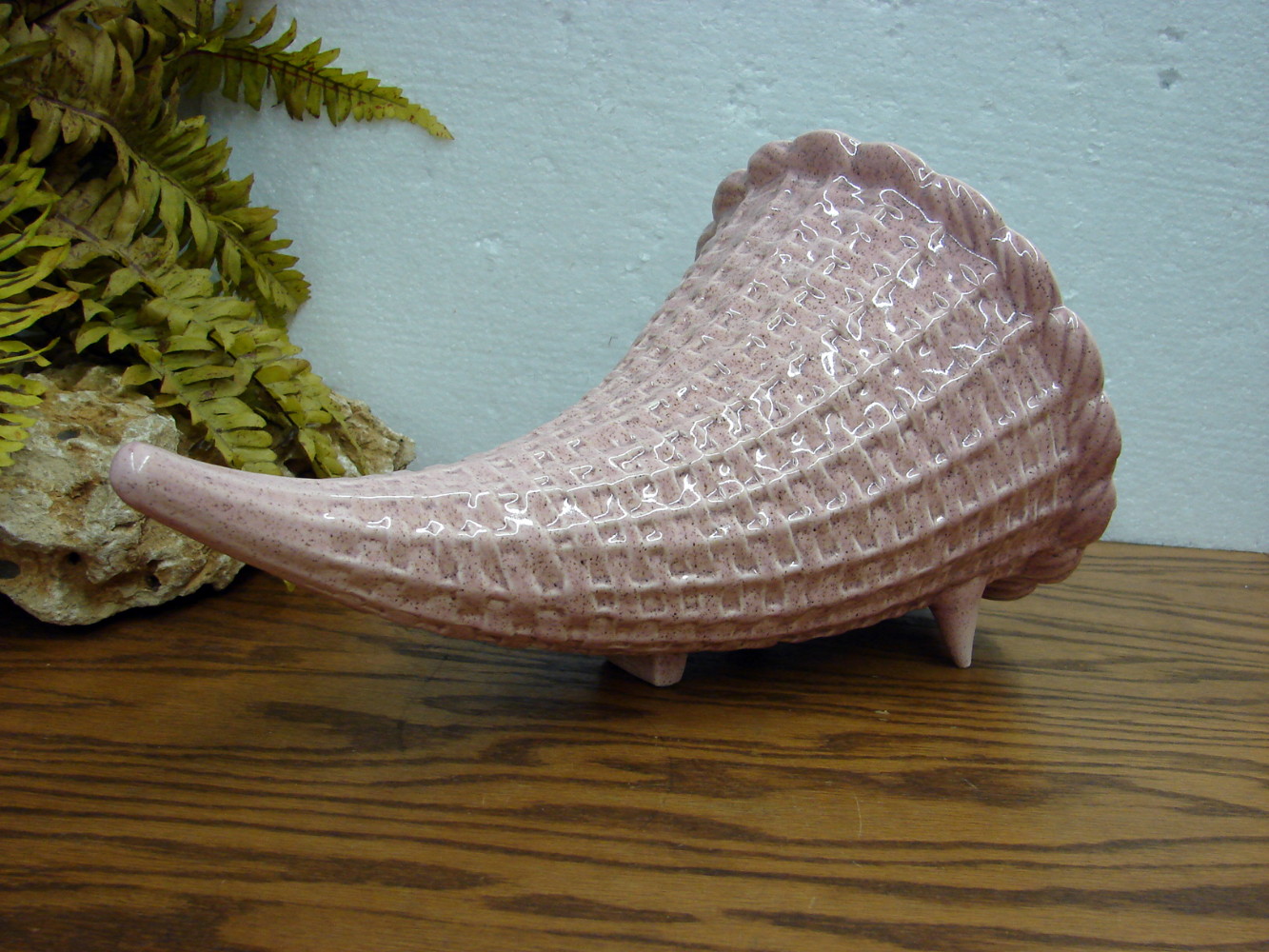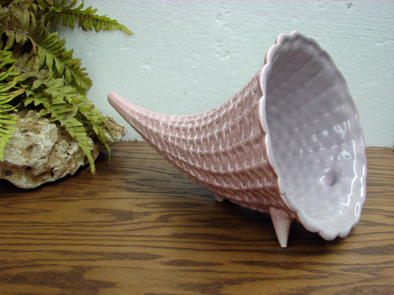Vintage Red Wing Pottery #442 MCM Pink Footed Horn of Plenty Cornucopia