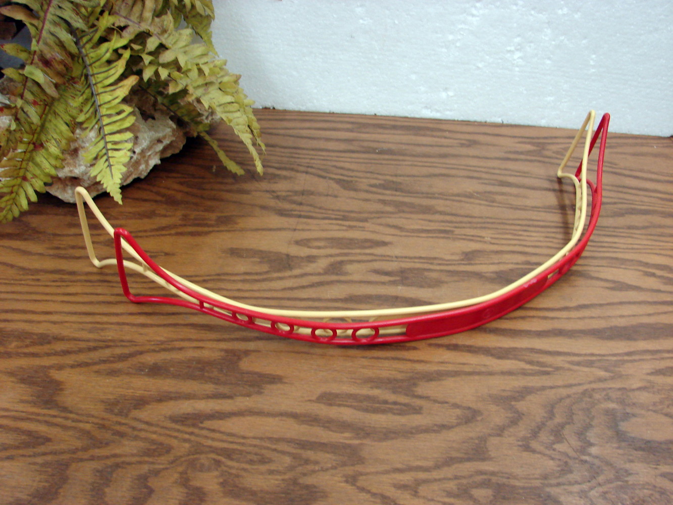 One Tupperware Red colored cake taker pie carrier handle only. Measures about 22 1/2″ long. #624. Free from damage. Just what you need if your misplaced yours. Longer Harvest Gold one also available.