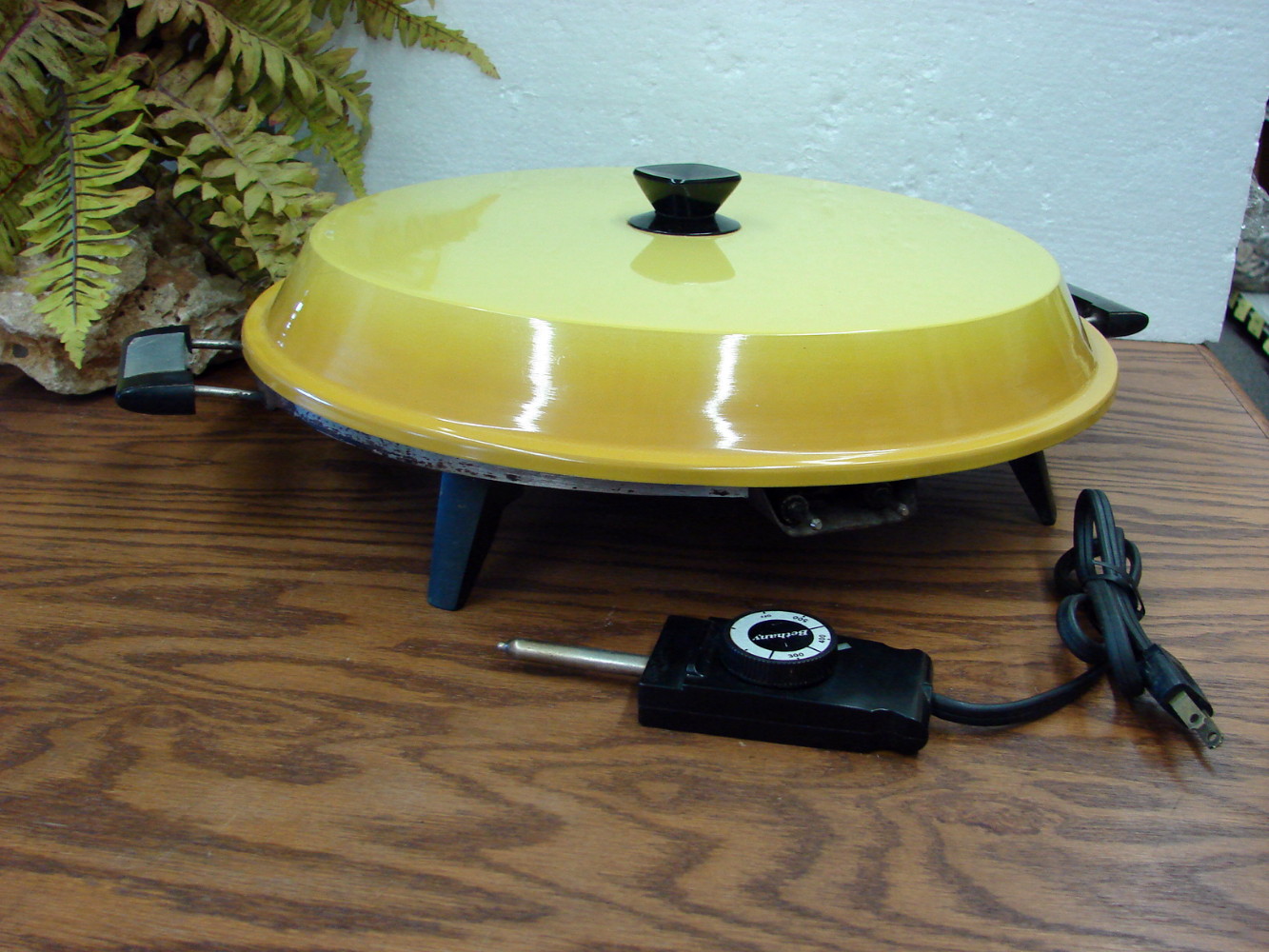 Vintage Yellow Fade Lid for 16″ Lefse Griddle Grill.  Perfect for making pancakes, French Toast, etc.  Measures 16 1/4″ wide by 2″ tall not counting the knob.   Very light wear.  Lid only.