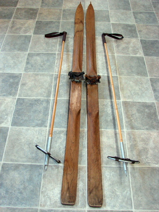 Antique Hickory Dome Top Nipple Wood Snow Skis Ranger Bamboo Ski Poles