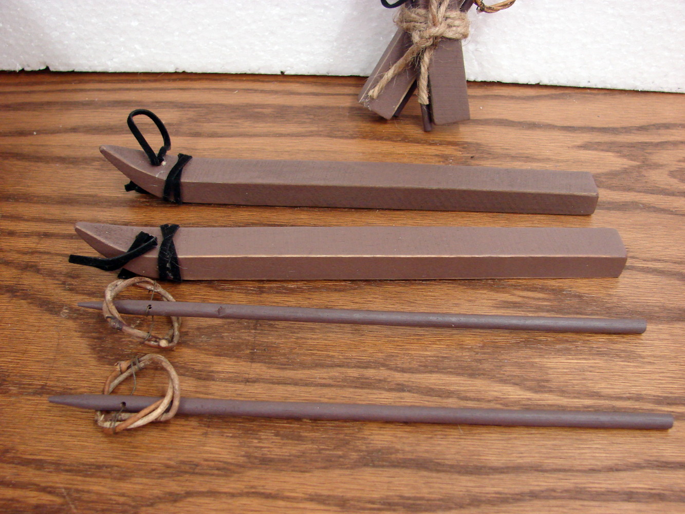 Chunky Wood Mini Snow Skis and Poles Miniature Downhill Ski