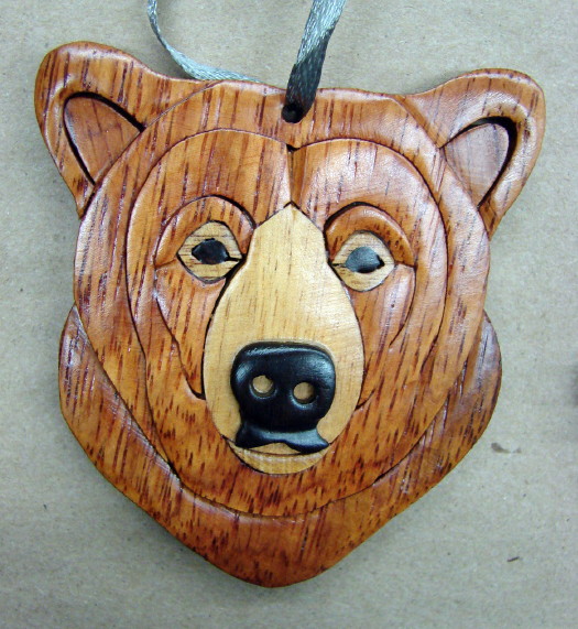 Brand new unique handcrafted gorgeous Intarsia inlaid wood ornament. 3-dimensional wood carving, created with no painting or staining, just a variety of natural woods polished to bring out their natural beauty. Choose from: Bass | Bear Head | Beaver | Eagle Head | Elk Head | Moose Head | Squirrel | Standing Buck | Standing Elk | Standing Moose | Trout | Wolf Head Each measure about 2 1/2″ – 4″. Come ready to hang with a ribbon.