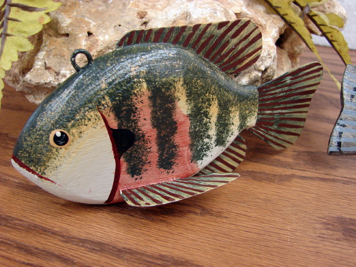 Brand new, handcrafted in Minnesota by Grove Fish Works (a fish decoy artist) are these unique hand-carved and hand-painted spearing decoys. Measures between 6-9″ long. Weighted and working.