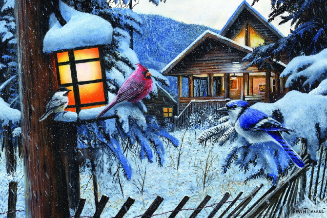 Gallery Wrapped Canvas LED Art Backyard Bird Winter Cabin Birds Kevin Daniel