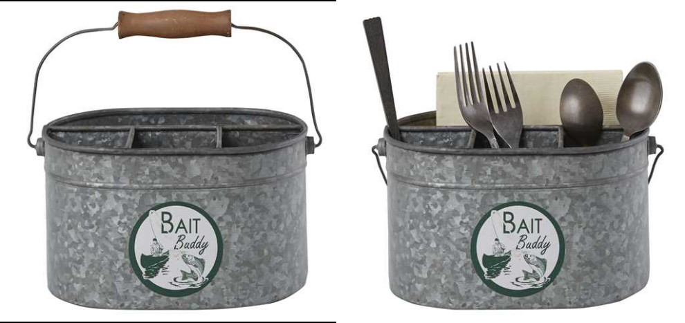 Retro Tin Bait Buddy Utensil Silverware Flatware Caddy Crock