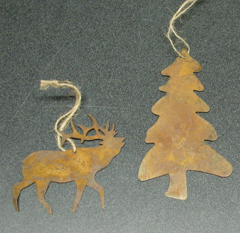 Brand new rusty tin Moose Elk or Tree complete with jute rope hanger. Small Moose measures about 3″ long by 2 1/2″ tall, Medium Moose measures about 5 1/4″ long by 3 3/4″ tall, Large Moose measures about 6 1/2″ long by 5″ tall, Elk measures about 3 1/4″ long by 3″ tall and Tree measures about 4 3/4″ long by 2 1/2″ wide. (not counting jute hanger. Perfect for your north country craft projects. Other Rusty tin also available.