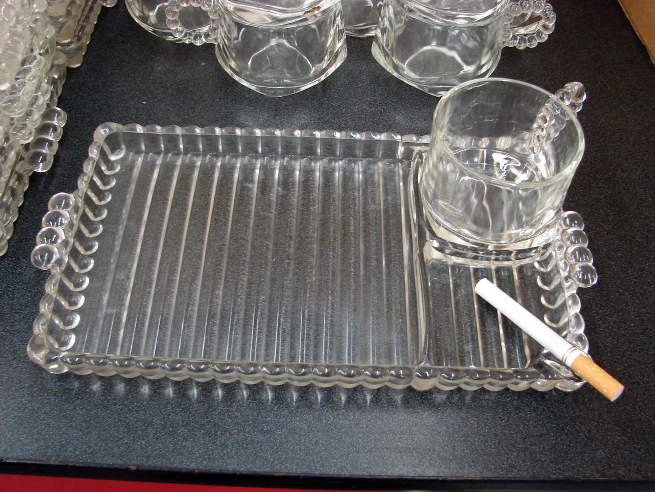 4 Trays 4 Cups Vintage Hazel Atlas Orchard Crystal Sip Smoke Snack Party Set