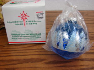 Vintage Bronner's Christmas Ball Ornament Blue Forest Gingerbread Man