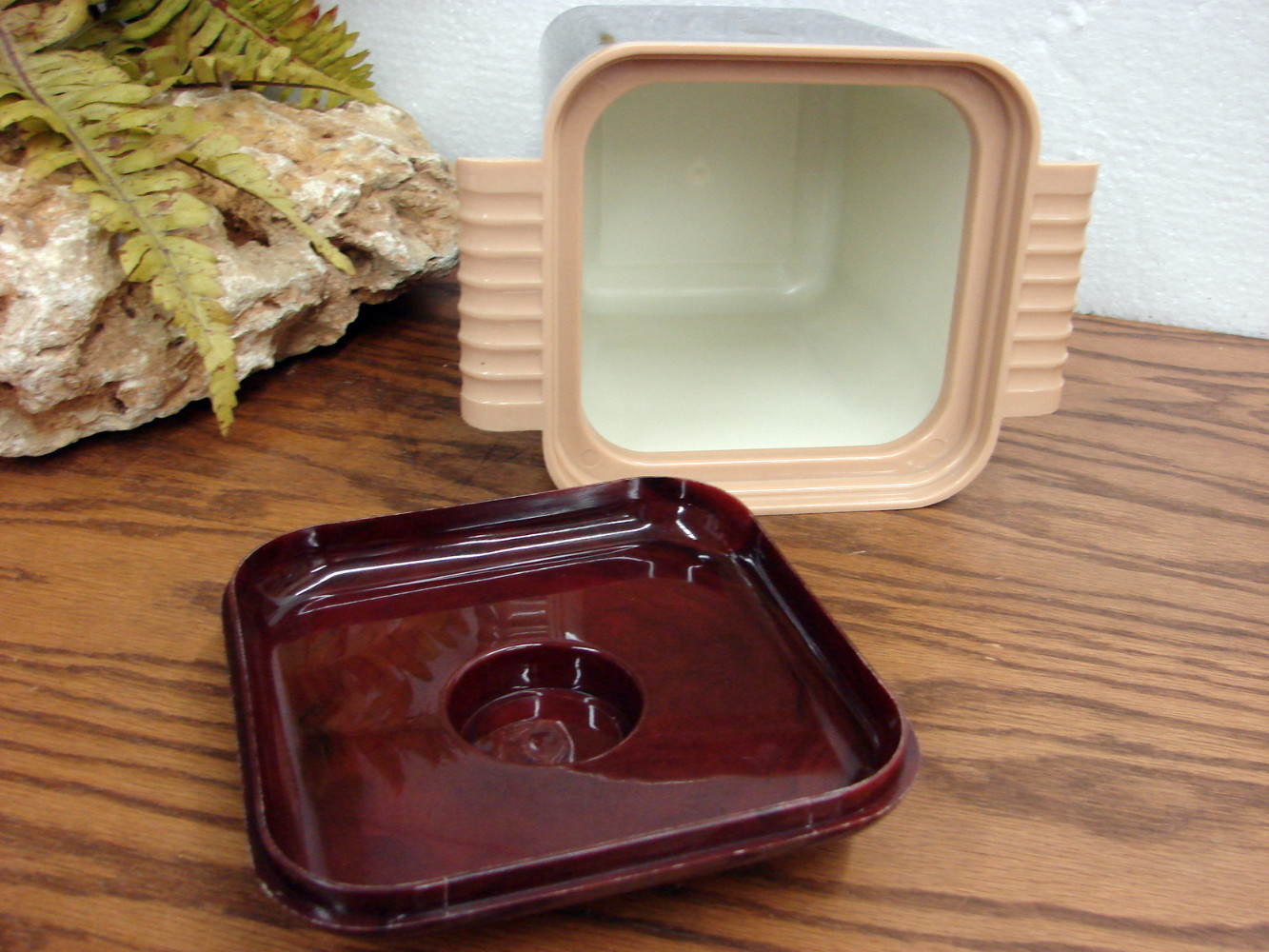 Great condition on this vintage Lustro Ware Brown Wood Grain #112 ICE Bucket. Normal use, but no damage. Measures about 8 x 8″.