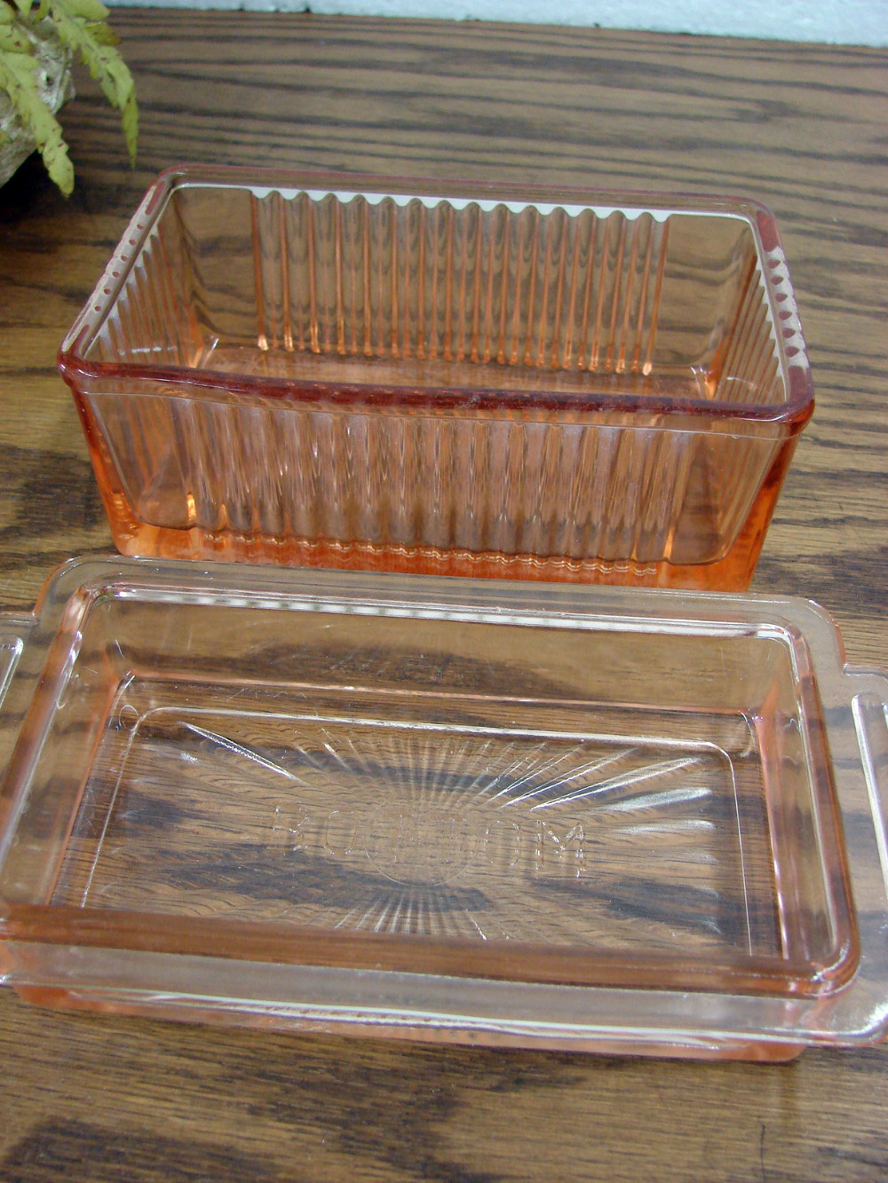 Vintage Pink Depression One Pound Glass Butter Dish Ribbed