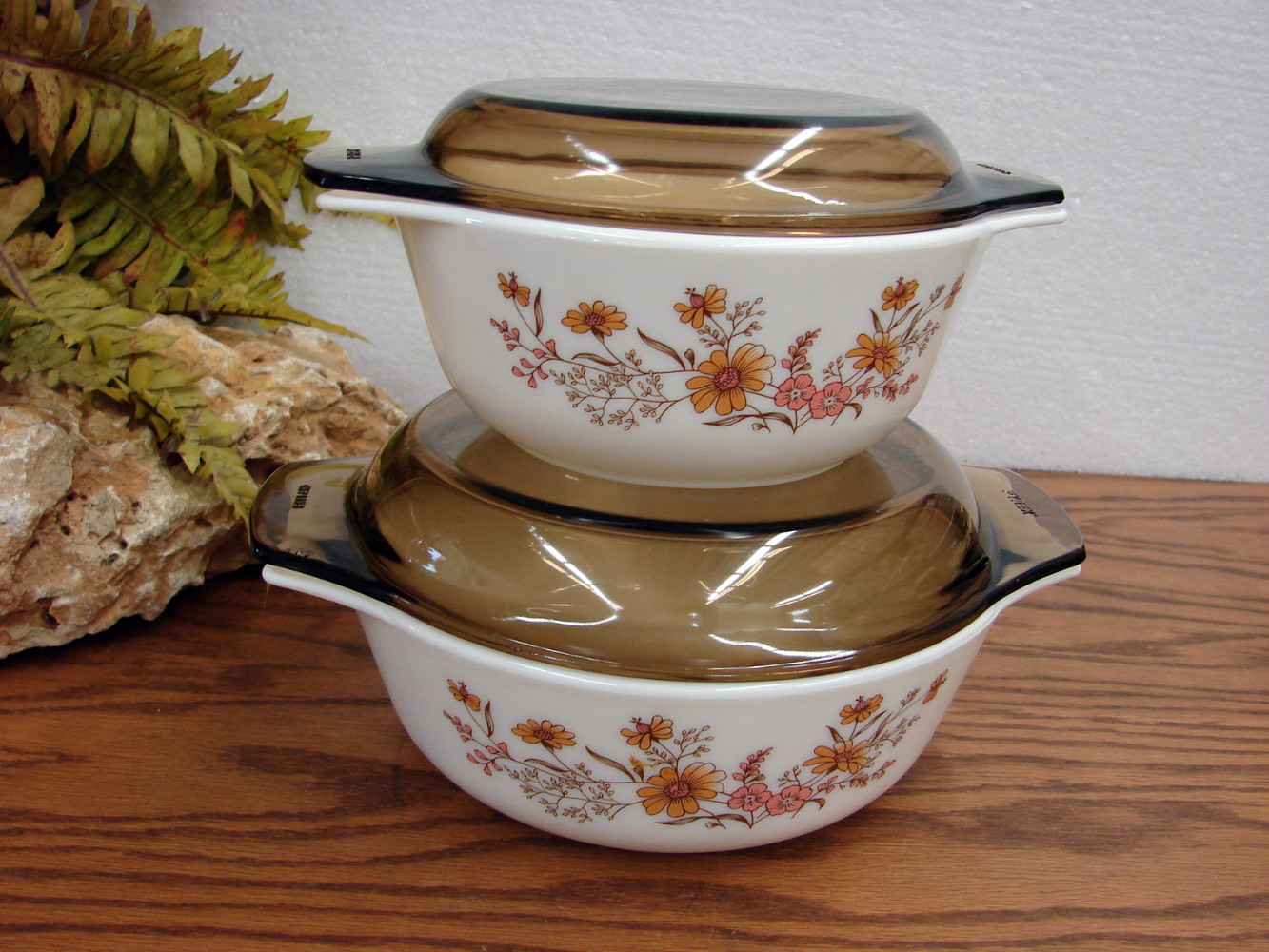 Vintage PYREX Woodland Country Autumn England Set/2 Casserole w/ Lids